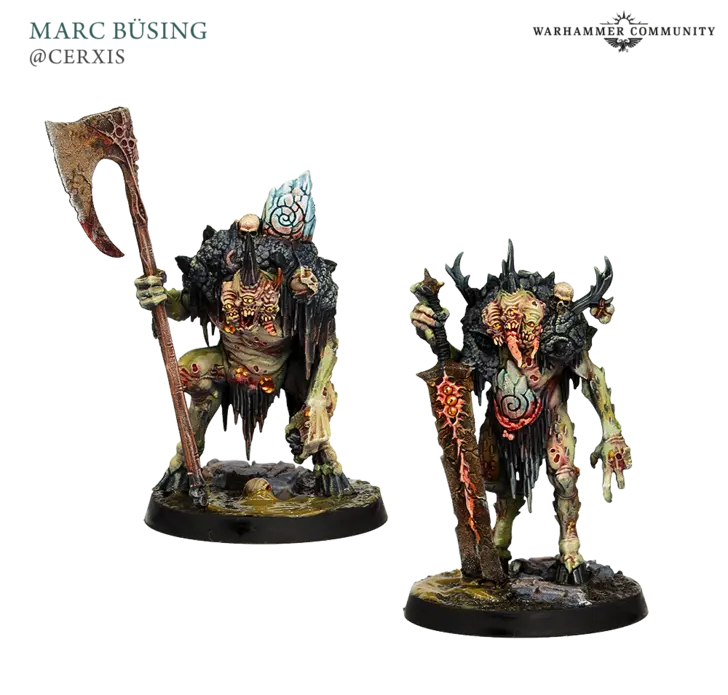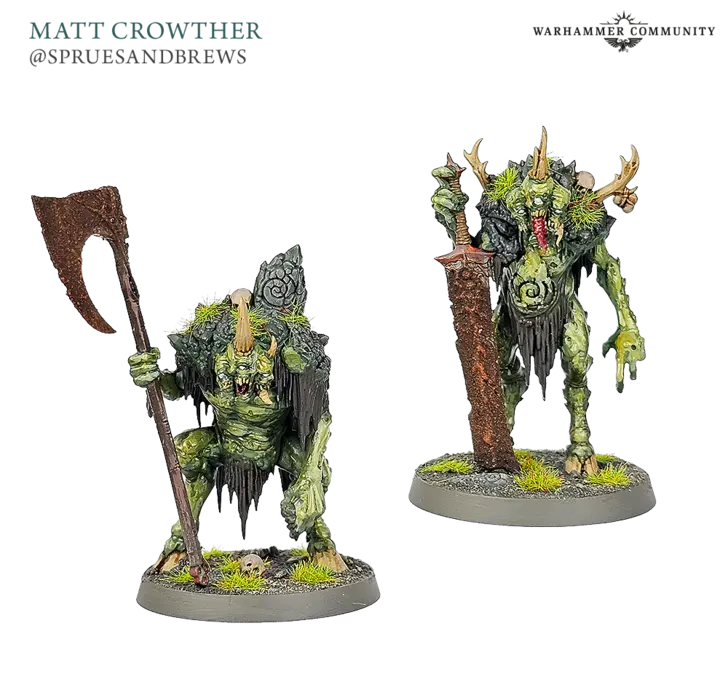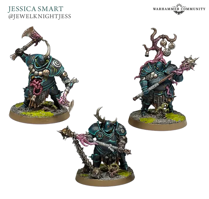 با یک ارتش واقعی از مینیونها و باسها در جعبه، نقاشان شجاع جامعهمان همچنین یک ضیافت فاسد از کارهای رنگآمیزی باشکوه به ما عرضه کردند. Matt Crowther چندین Pestigors را گردآوری کرد، Rob Wolters از Battle Bunnies یک تهدید سهتایی خوشایند برای نورگل شامل Foulhoof و Pestigors نگهبان فراهم کرد، و Jessica Smart یک دسته از Mire Kelpies فاسد اما بهطرز عجیبی خوشنشان را رنگآمیزی کرد.